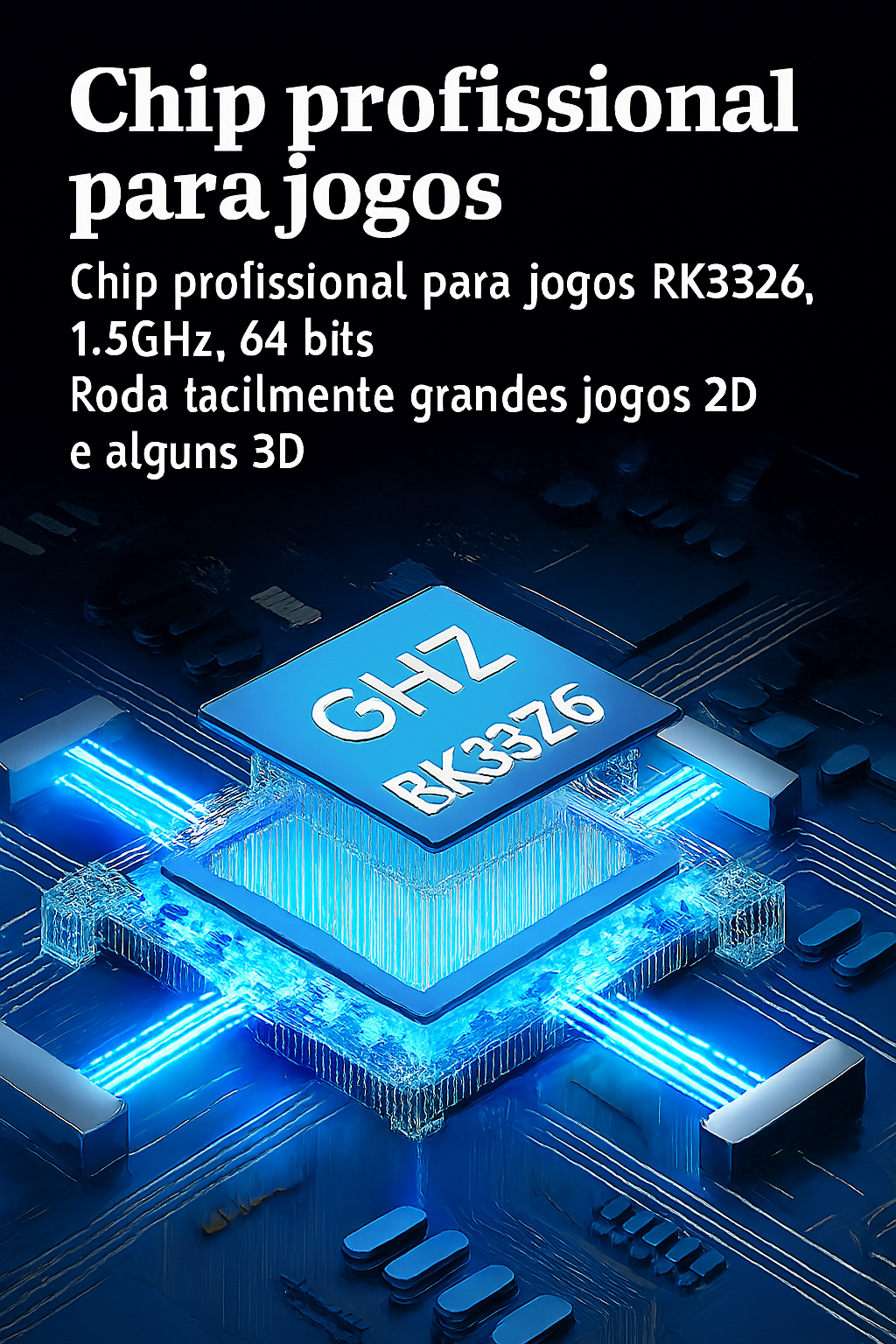 ✅ Chip RK3326 de 64 bits – desempenho estável e fluido para jogos 2D e 3D.