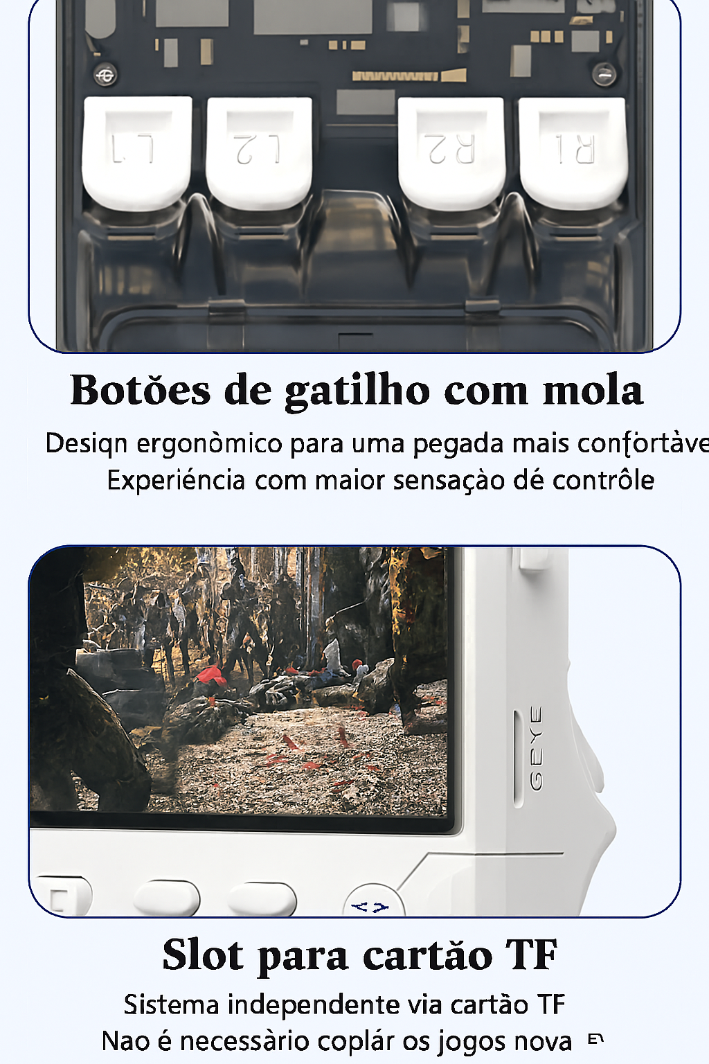 ✅ Expansão por TF Card (64/128 GB): armazene mais jogos sem limites.